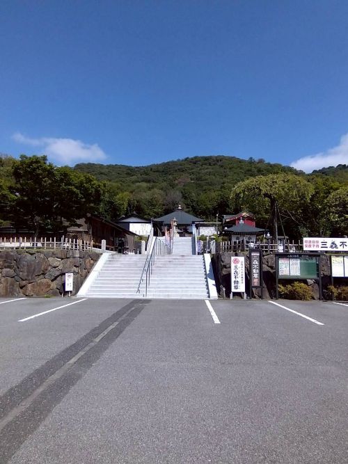 奥の小高い丘にある三毳(みかも)不動尊参拝。賽銭はPay Payでも受け付けていた。